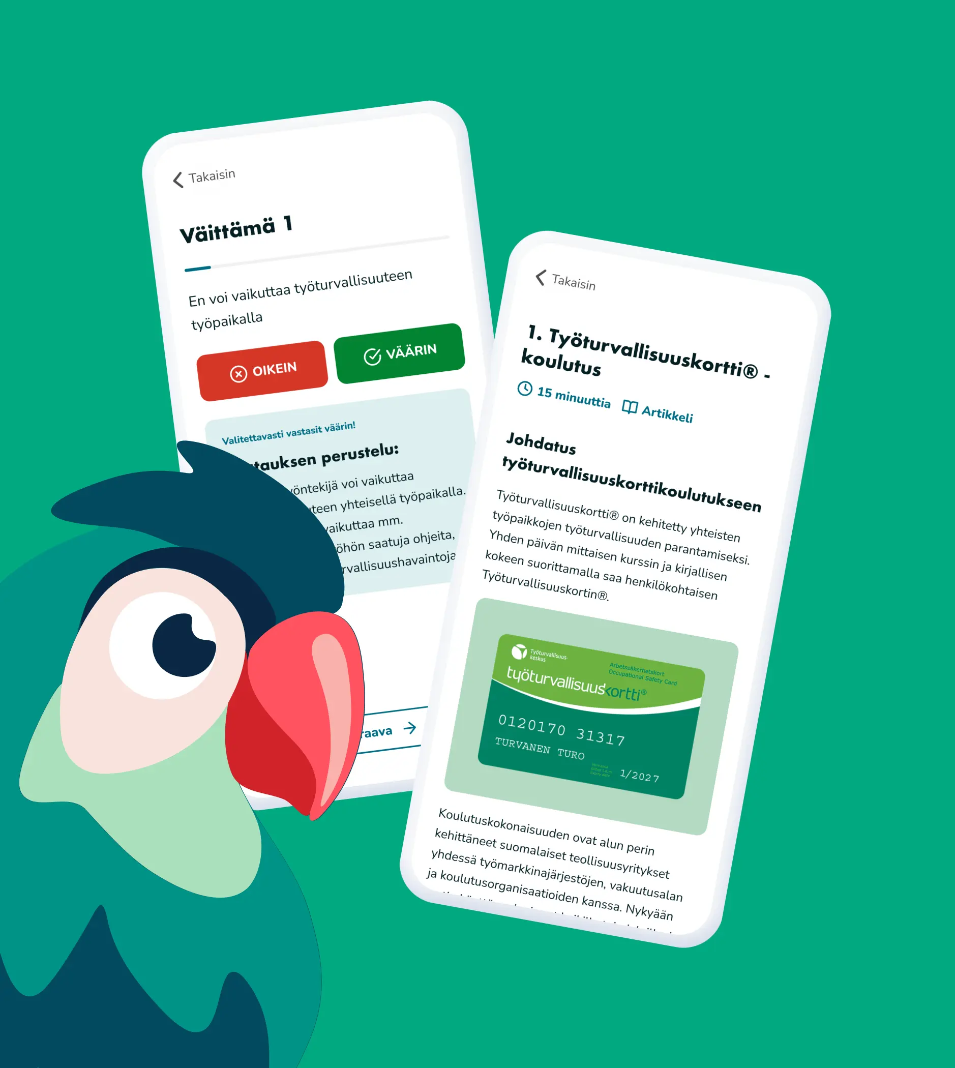 Työturvallisuuskortti verkkokoulutuksen hintaan sisältyy yleensä kaikki tarvittavat materiaalit ja resurssit, joita tarvitset koulutuksen suorittamiseen. Tämä voi sisältää esimerkiksi oppimateriaalit, videot, interaktiiviset tehtävät ja lopputestin. Hintaan sisältyy lisäksi virallinen Työturvallisuuskortti, jonka saat postitse läpäistyn tentin jälkeen. Fyysisen kortin lisäksi saat halutessasi Työturvallisuuskeskuksen kautta kätevän mobiilikortin. Jos sinulla on kiire hankkia työturvallisuuskortti, voit myös pyytää erillistä määräaikaista todistusta kurssinjohtajalta. Tämä määräaikainen todistus on kuitenkin voimassa vain neljä viikkoa!